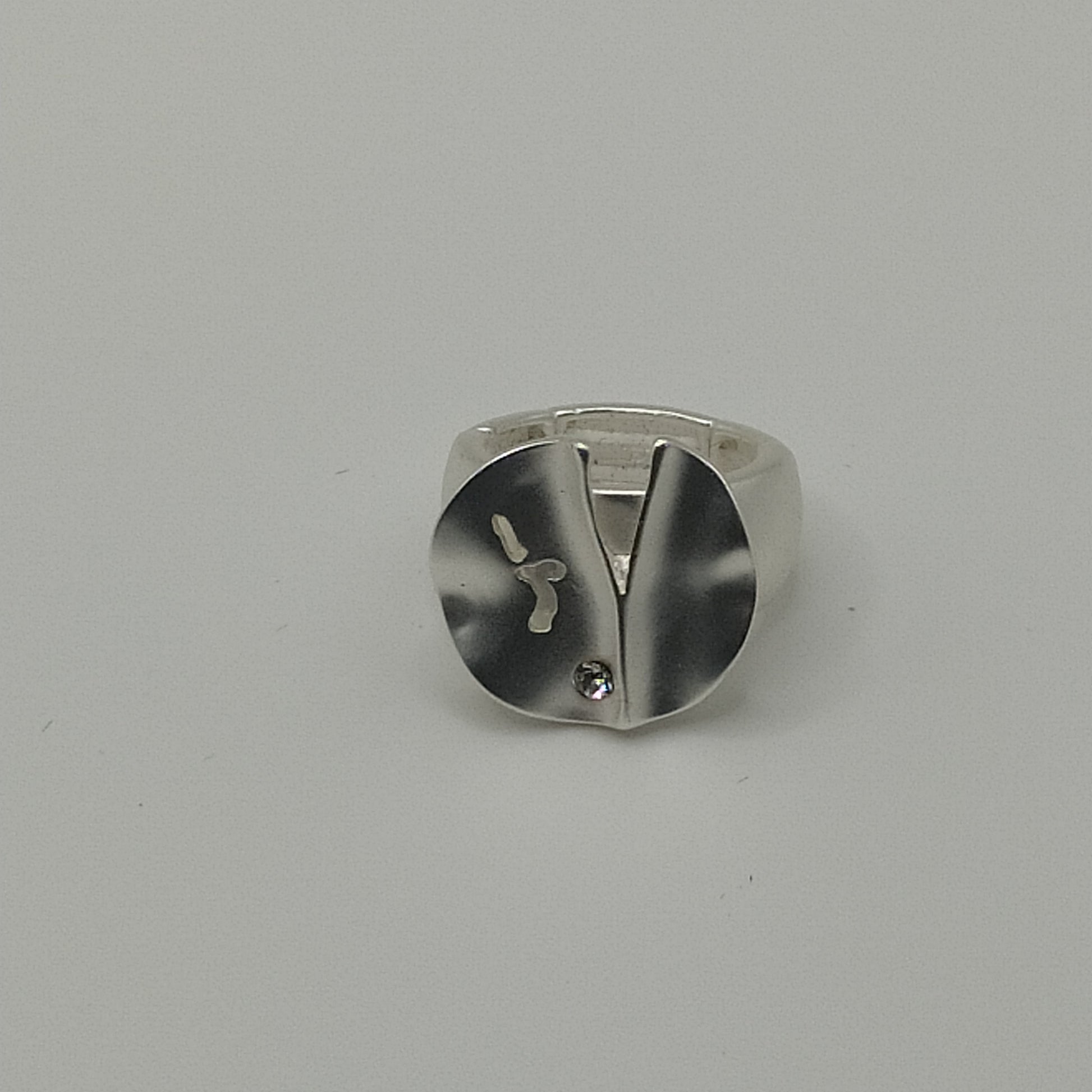 Add an artistic touch to your accessory collection with this unique silver-toned ring. Crafted from non-precious metals, this ring features an eye-catching round design with intricate cut-out details and a small gemstone accent. The polished finish enhances its modern and stylish appeal, making it a standout piece.