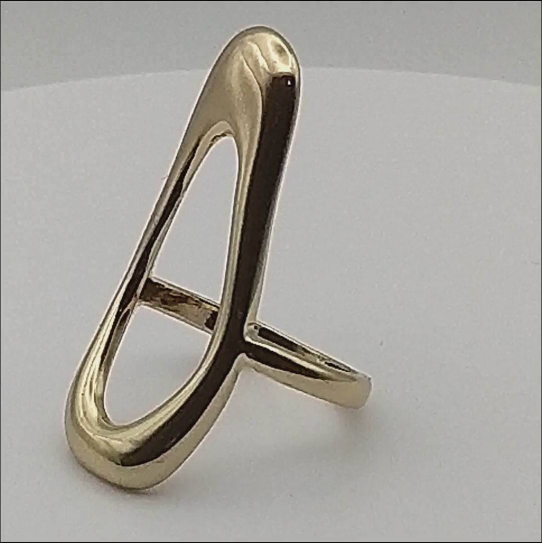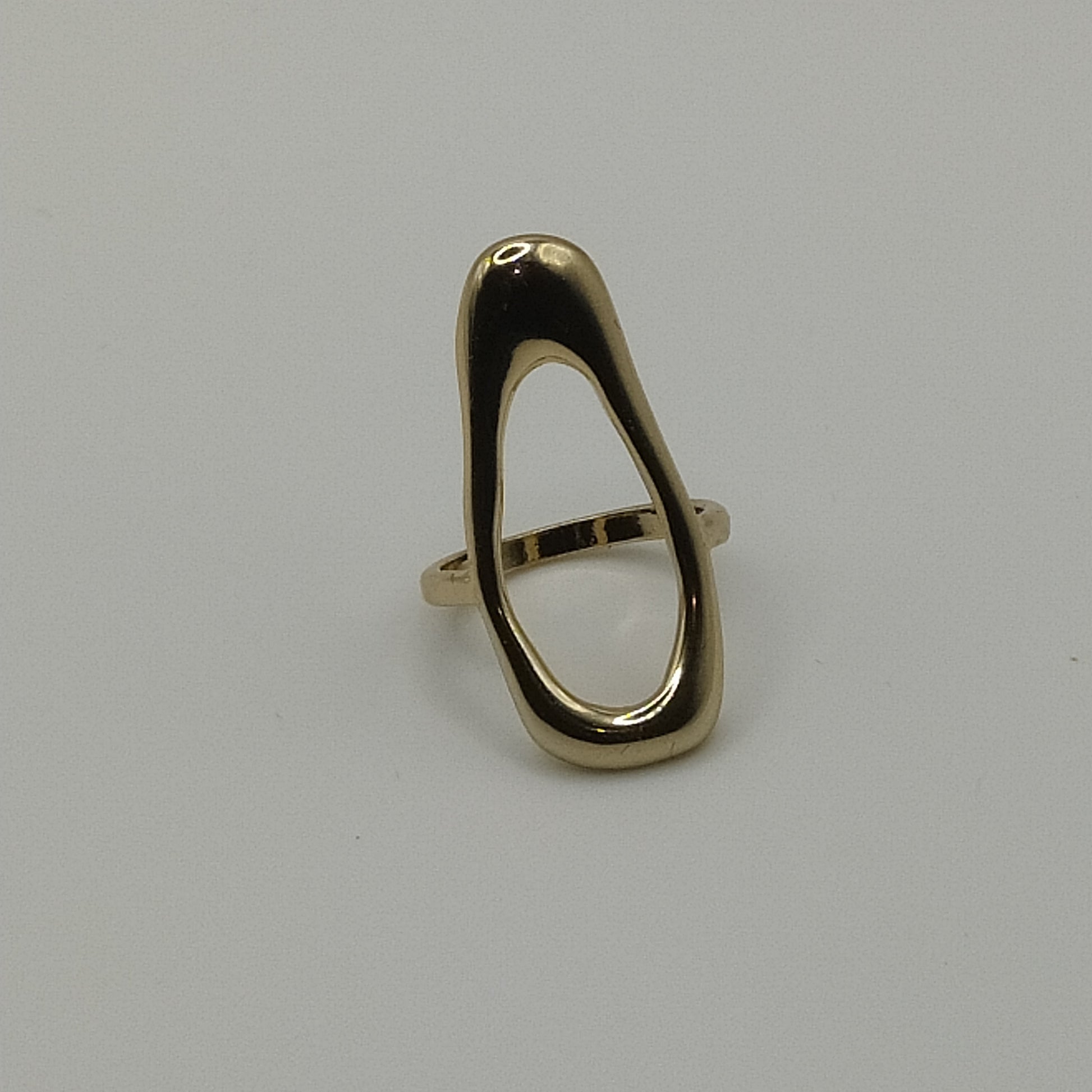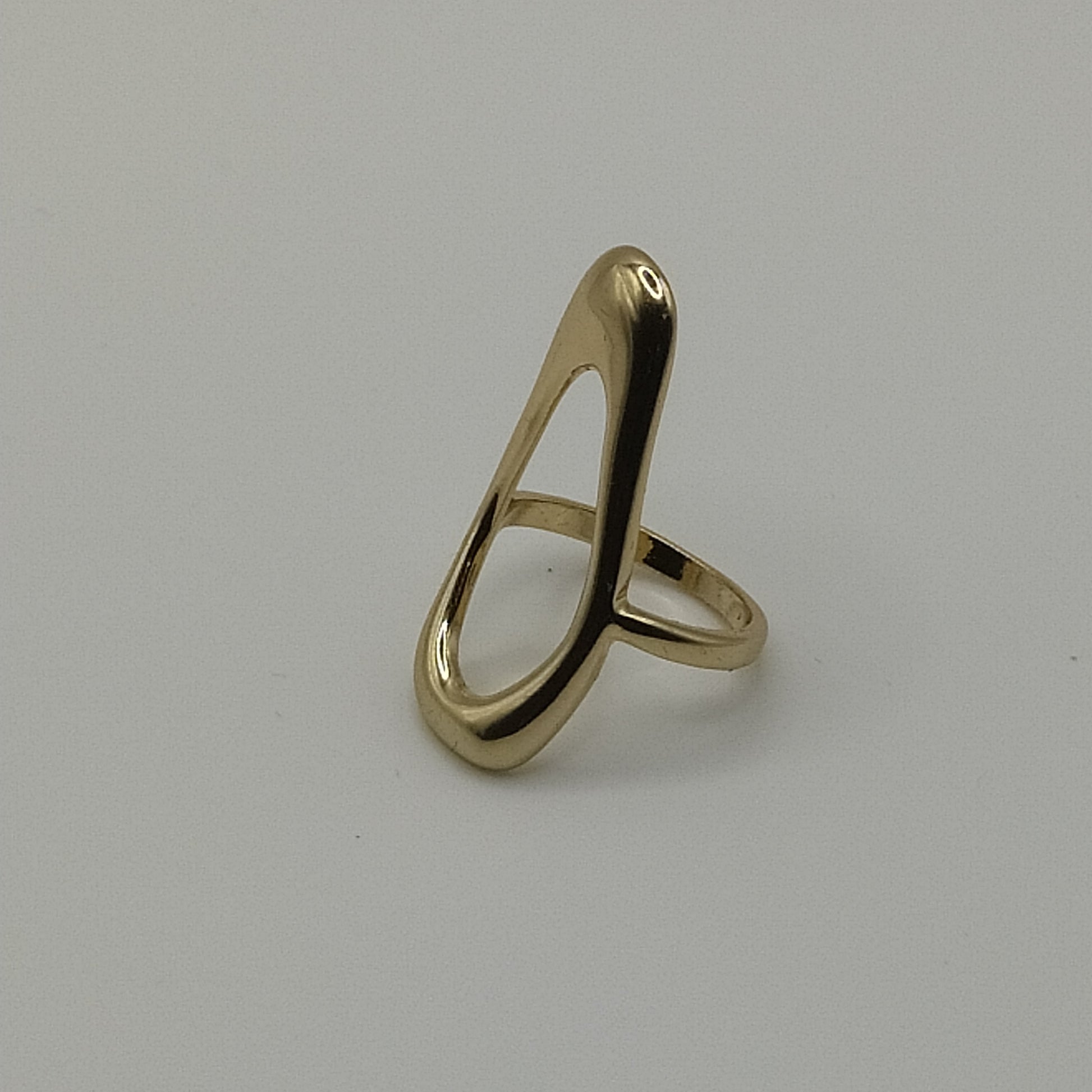 Enhance your look with this sleek open-frame gold-toned ring. Crafted from non-precious metals, this ring features a minimalist design with a polished finish, creating a clean and contemporary aesthetic. The open-frame style gives it a modern and airy feel, reminiscent of architectural elements.