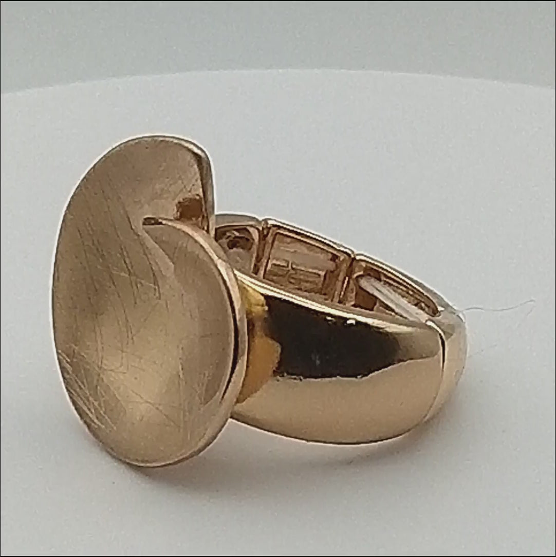 Bring a touch of nature to your look with this elegant gold-toned floral ring. Crafted from non-precious metals, it features a unique design reminiscent of a delicate flower in bloom. The polished finish adds a sophisticated touch, while the built-in stretch band offers a snug and adaptable fit, accommodating various finger sizes with ease.